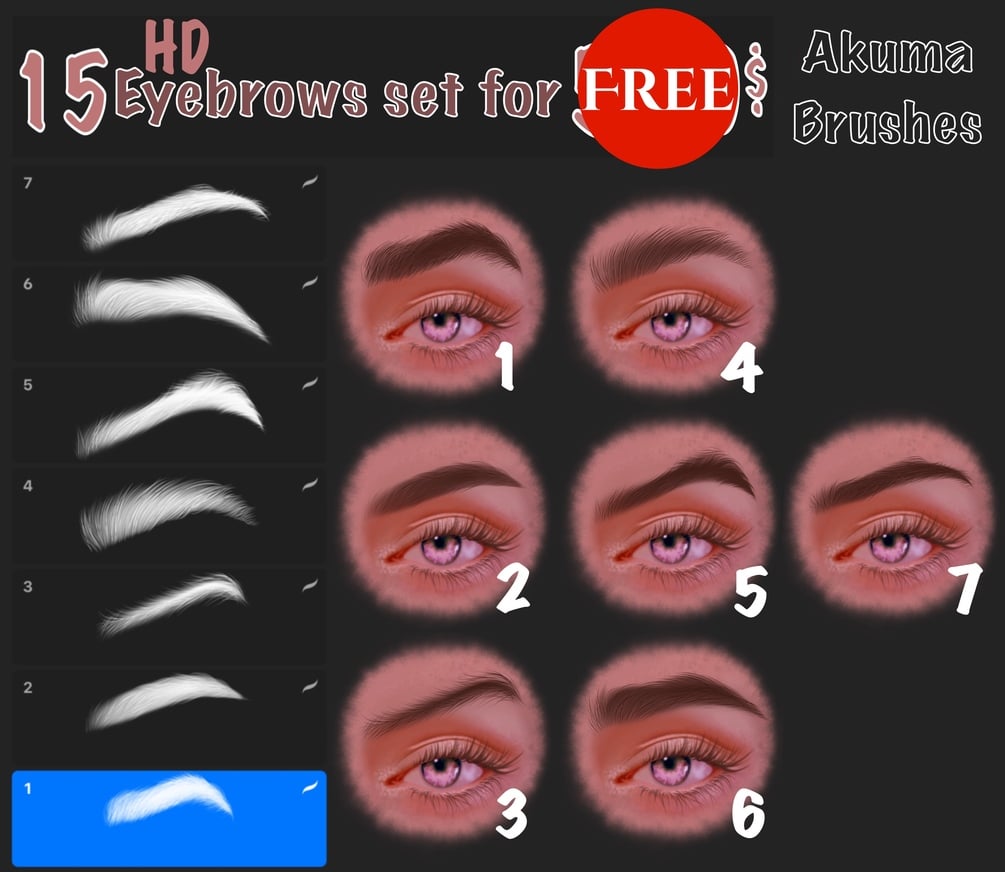 15 Eyebrows Procreate brushes you can use for your own personal or commercial use.