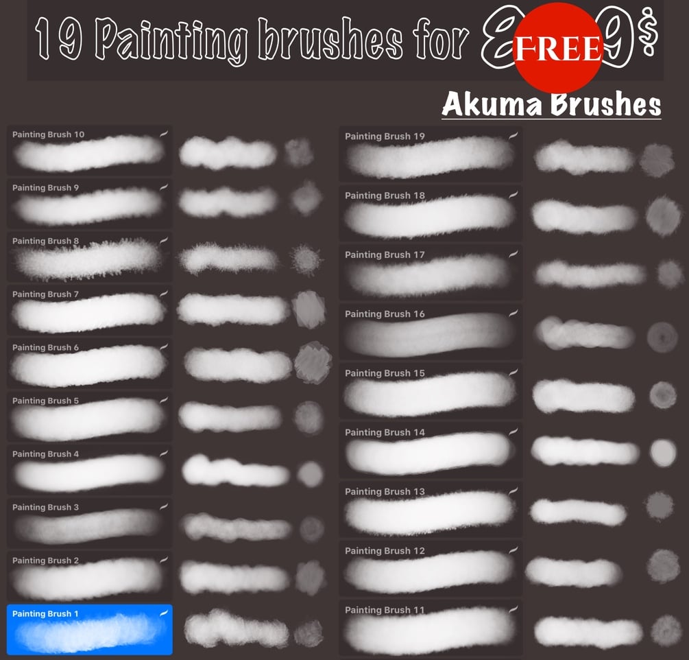 19 Painting Procreate brushes (can be used as blending brushes as well) you can use for your own personal or commercial use.