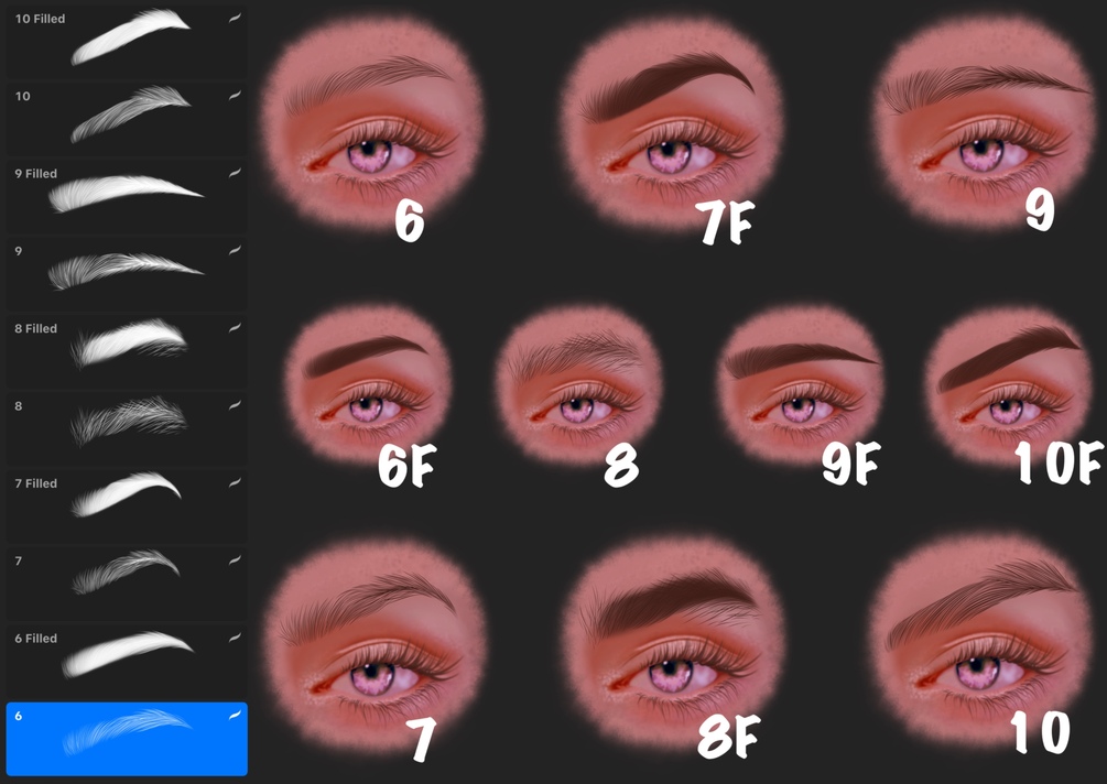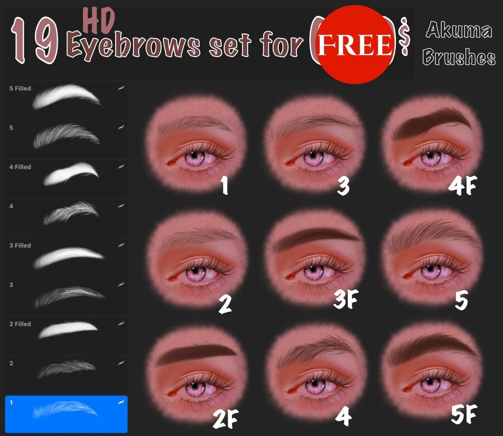 19 Eyebrows Procreate brushes you can use for your own personal or commercial use.